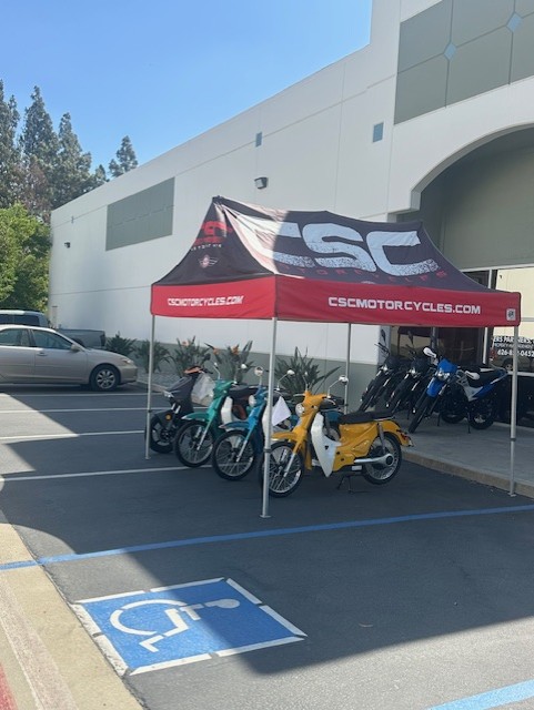 The weather was absolutely perfect for an outdoor fiesta. With a glorious 75-degree temperature and a light breeze flowing through the air, we set up shop right outside the doors, complete with the iconic CSC canopy shading the setup. It felt like a mini-rally right in the parking lot! (We even brought out a few of our classic scooters for decoration.)